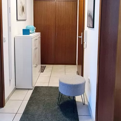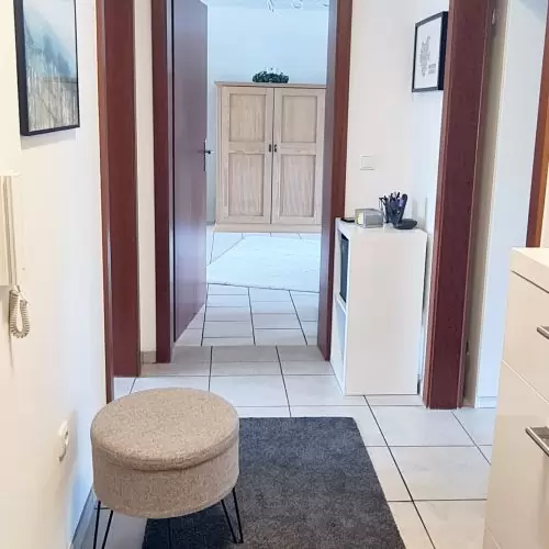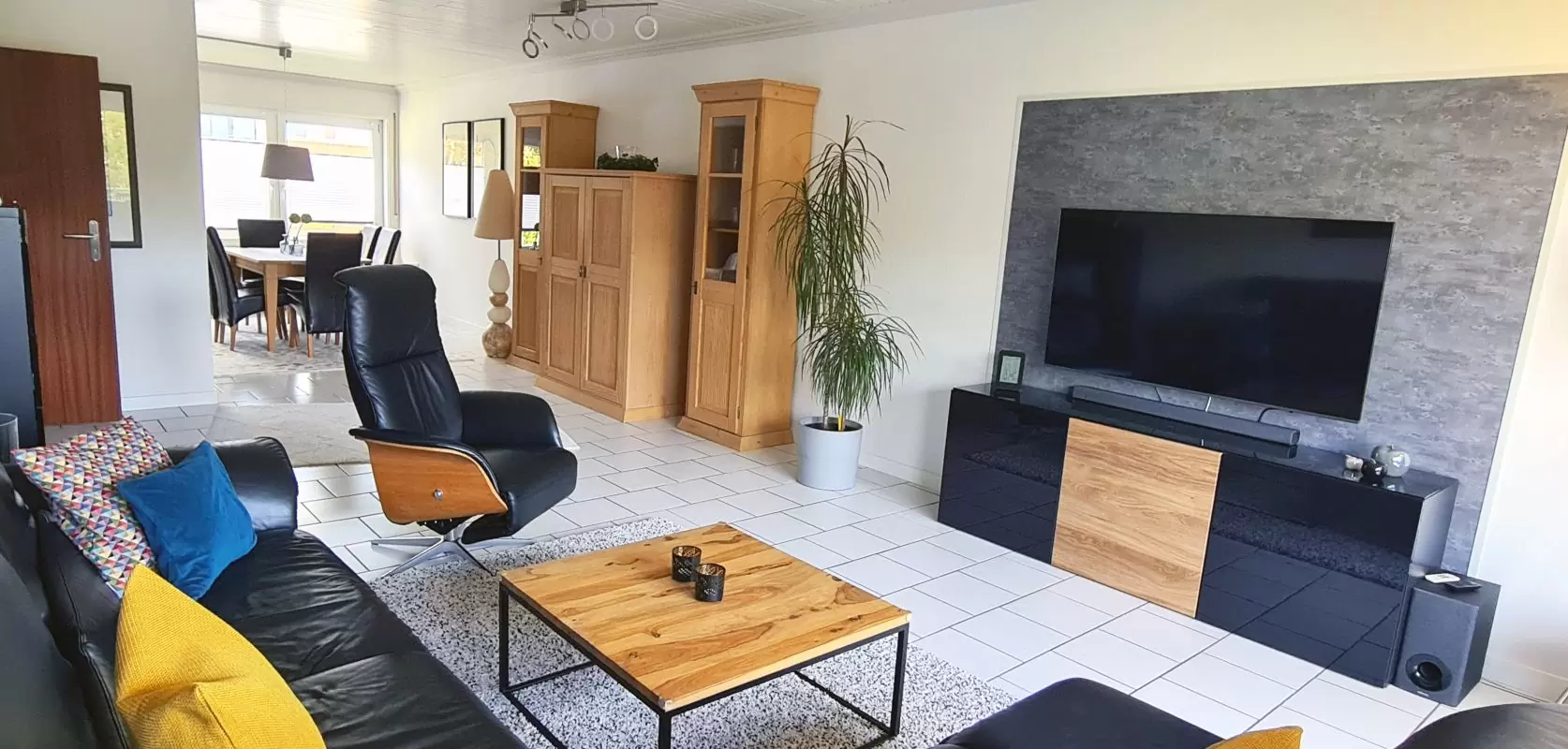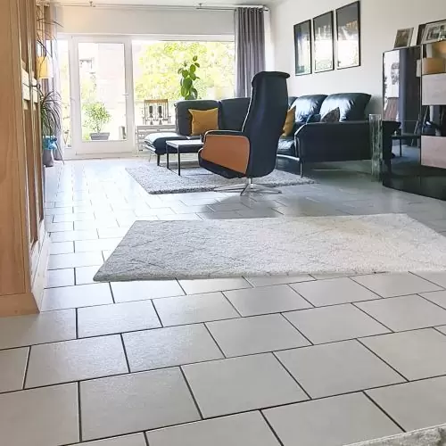 Diese wirklich sehr schöne, helle, neu renovierte Eigentumswohnung befindet sich im 1. Obergeschoss eines 1977 erbauten, gepflegten 3-Familienhauses. Das Herzstück dieser Wohnung ist zweifellos der großzügige 50m² grosse offene Wohn- und Essbereich mit direktem Zugang zur Loggia, welche einen herlichen Ausblick auf den schön angelegten Garten bietet, hier fühlen Sie sich direkt wohl! An sonnigen Tagen sorgt eine Markise für Schatten und kühlt die Wohnung dadurch runter, was insbesondere an heißen Tagen von Vorteil ist. Die Wohnung verfügt über zwei großzügig geschnittene Zimmer, eine helle Küche, eine geräumige Diele sowie ein modernes Badezimmer mit Dusche und Glasabtrennung. Der grosszügige, lichtdurchflutete Wohn- Essbereich vermittelt Wärme und Gemütlichkeit und lädt zum Entspannen und Wohlfühlen ein. Die gesamte Wohnung ist mit hochwertigen Keramikfliesen ausgestattet, das Bad ist anthrazitfarben gehalten. Zu dieser Einheit gehört außerdem ein eigener Kellerraum. Ein Anschluss für Waschmaschine und Trockner ist ebenfalls vorhanden.