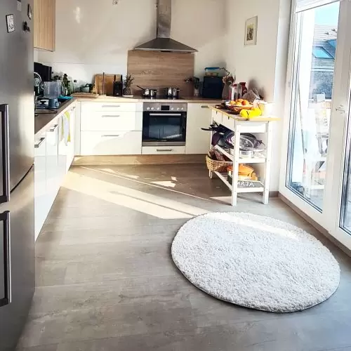 - hochwertige Vinylböden in Nussoptik.